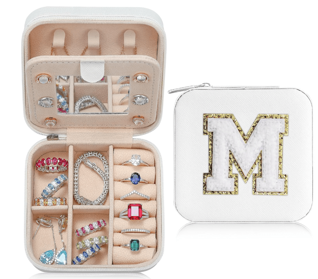 A jewelry organizer case keeps necklaces, rings, and earrings neatly stored at home or while traveling. It’s a thoughtful gift without sizing concerns.